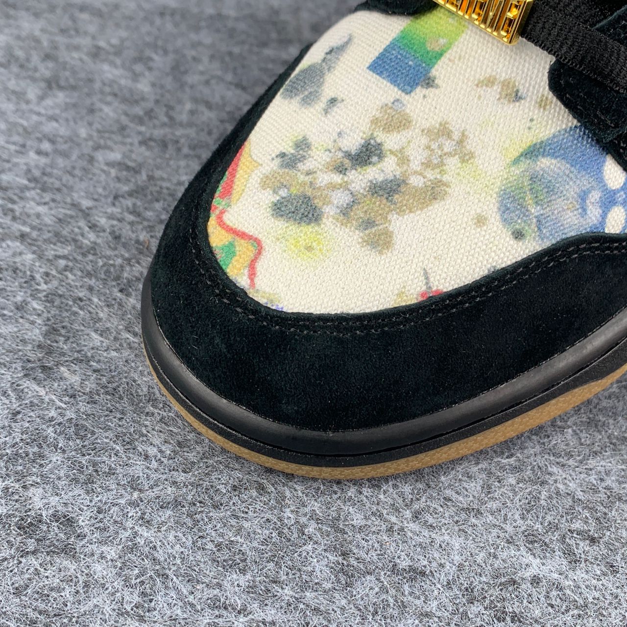 The Supreme x Nike Dunk Low SB ‘Rammellzee’ reunites the NYC skate brand with the late artist known for his graffiti writing and multi-media sculptures. The collaboration centers around the Dunk Low silhouette, featuring a canvas upper covered in Rammellzee’s original designs. Durable black suede is utilized on the eyestay, Swoosh and forefoot overlay, matching the shoe’s padded mesh tongue and textile collar lining. Gleaming accents arrive via ‘Supreme’ lace dubrae in a metallic gold finish. Anchoring the sneaker is a durable cupsole that pairs black sidewalls with a gum rubber outsole.