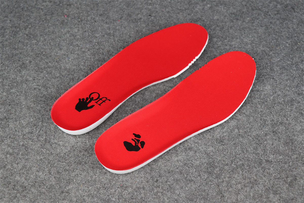 The Off-White Out of Office 'White Red' comes with a smooth white leather upper contrasted by red overlays and the brand’s signature arrow logo. Key OOO details such as the padded collar, perforated toe box, and exposed stitching maintain the recognizable structure of the silhouette. The design is finished with a durable rubber cupsole for a clean and streamlined look.