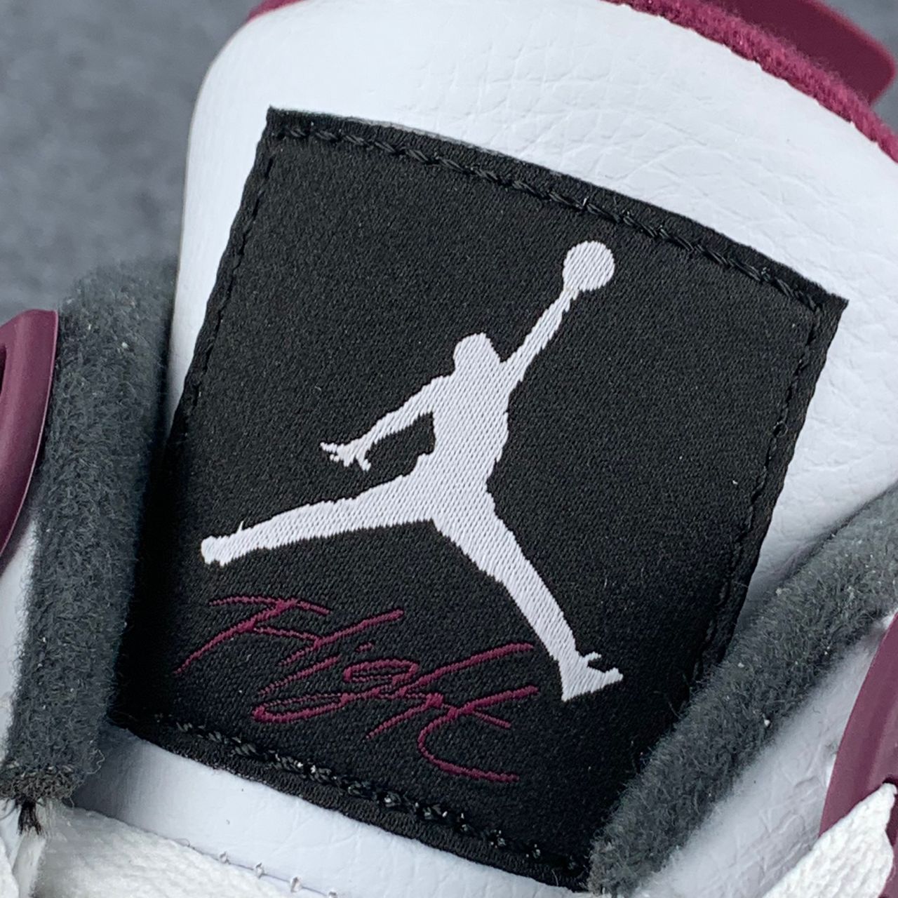 Celebrating Jordan Brand’s partnership with the French football club, the Paris Saint-Germain x Air Jordan 4 Retro ‘Bordeaux’ features color blocking that recalls the silhouette’s OG ‘Fire Red’ composition. The white leather upper is accented with black wings and Bordeaux detailing on the eyelets, interior tongue and heel, the latter marked with dual Jumpman and PSG branding. A black woven tab on the lateral forefoot is inscribed with ‘Paname,’ a slang term for the French capital.