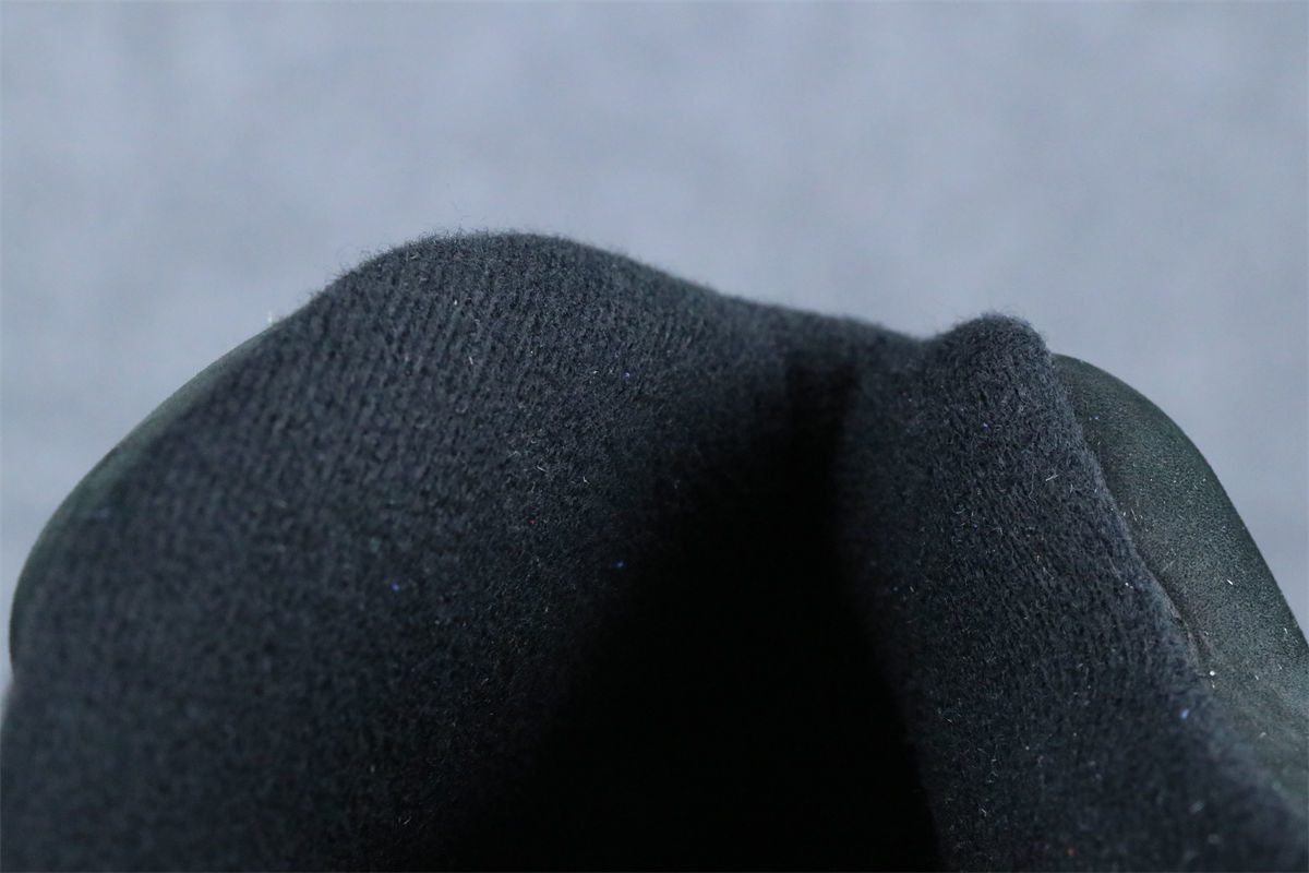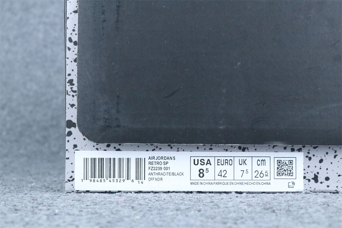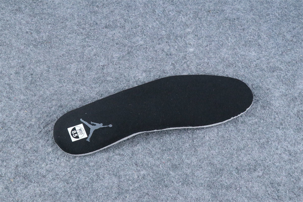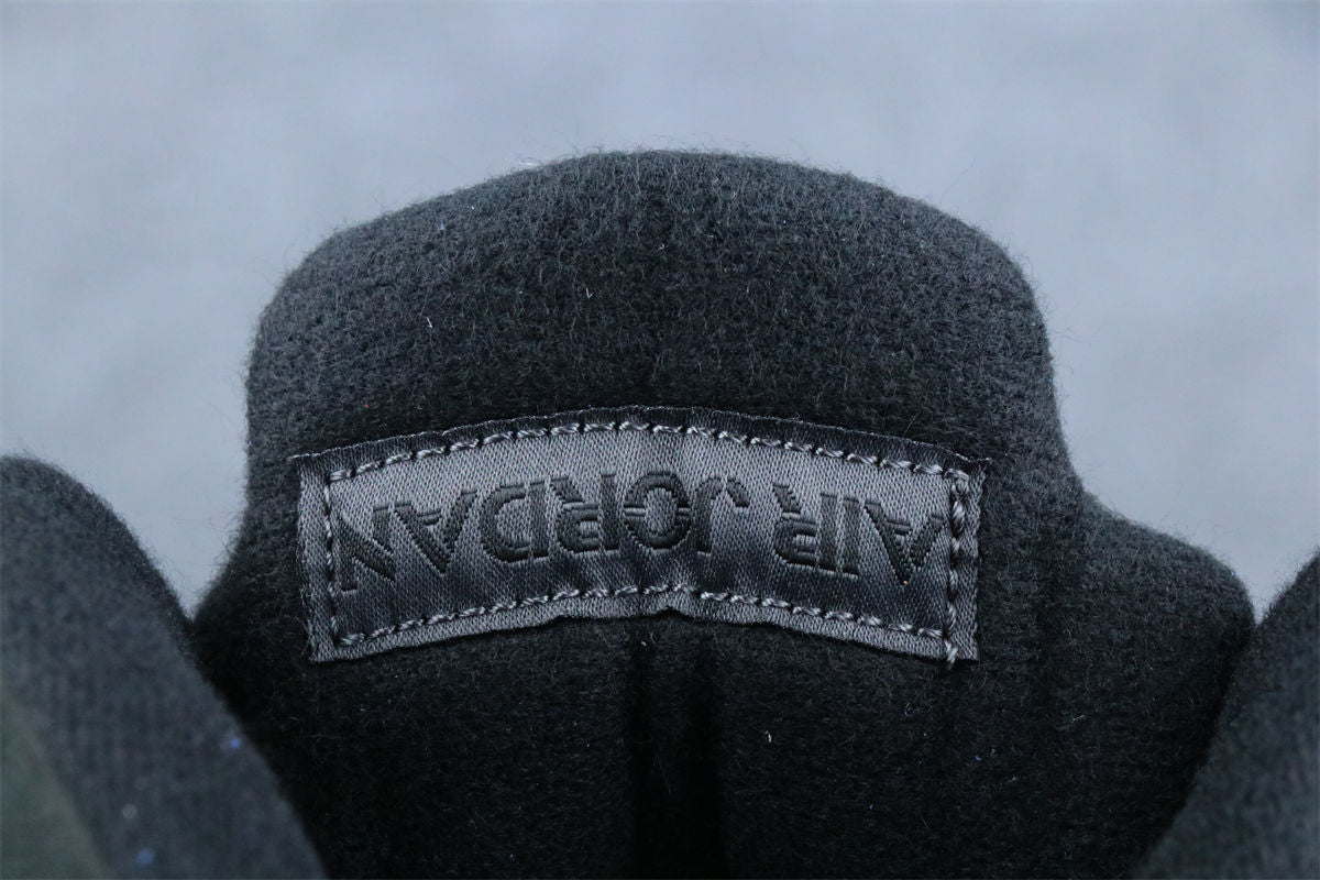 The unreleased Air Jordan 5 “Black Cat” sample delivers a full triple-black makeover, combining stealth and premium materials. The upper is constructed from matte black nubuck, paired with tonal black laces, eyelets, and mesh panels for a clean murdered-out look. Subtle smoke-grey Jumpman embroidery on the tongue and heel adds the only contrast, while the shoe rides on a matching black midsole with dark shark-tooth detailing and a smoky translucent outsole.