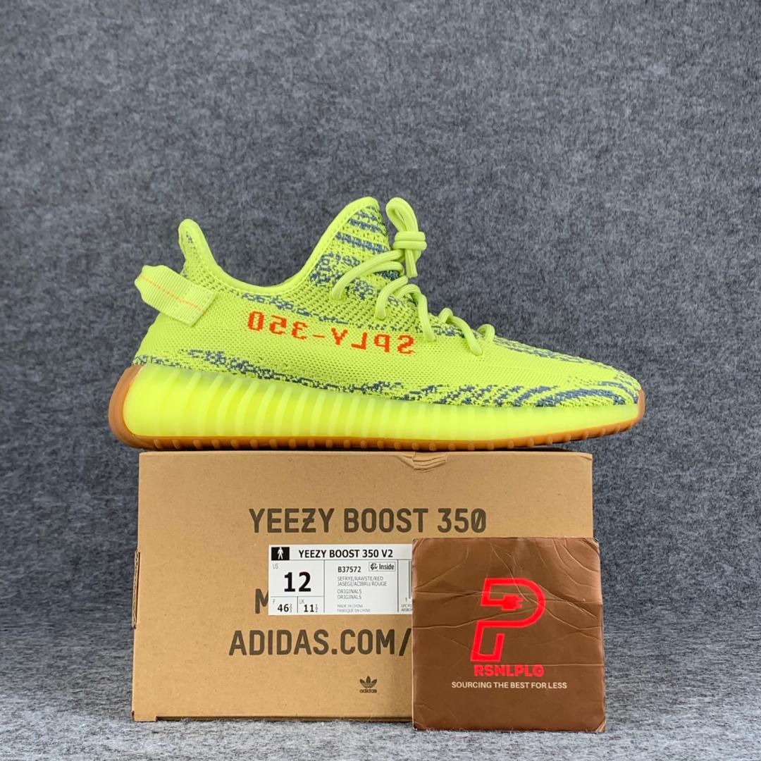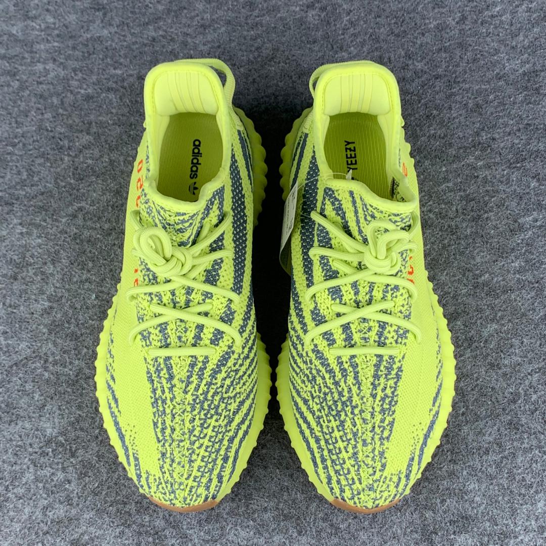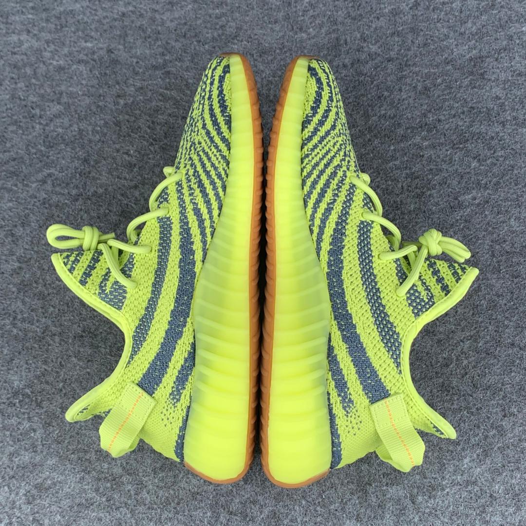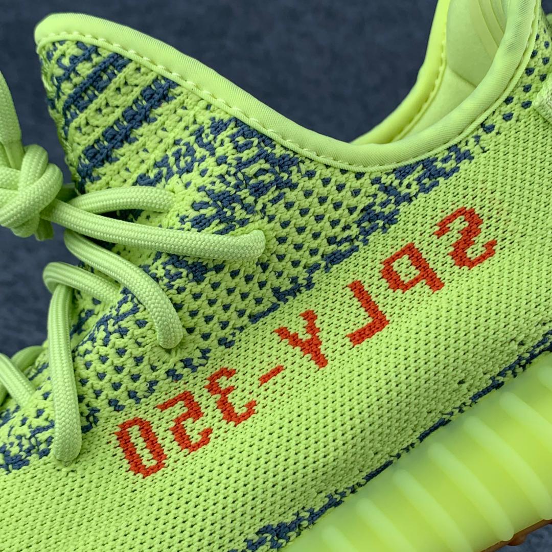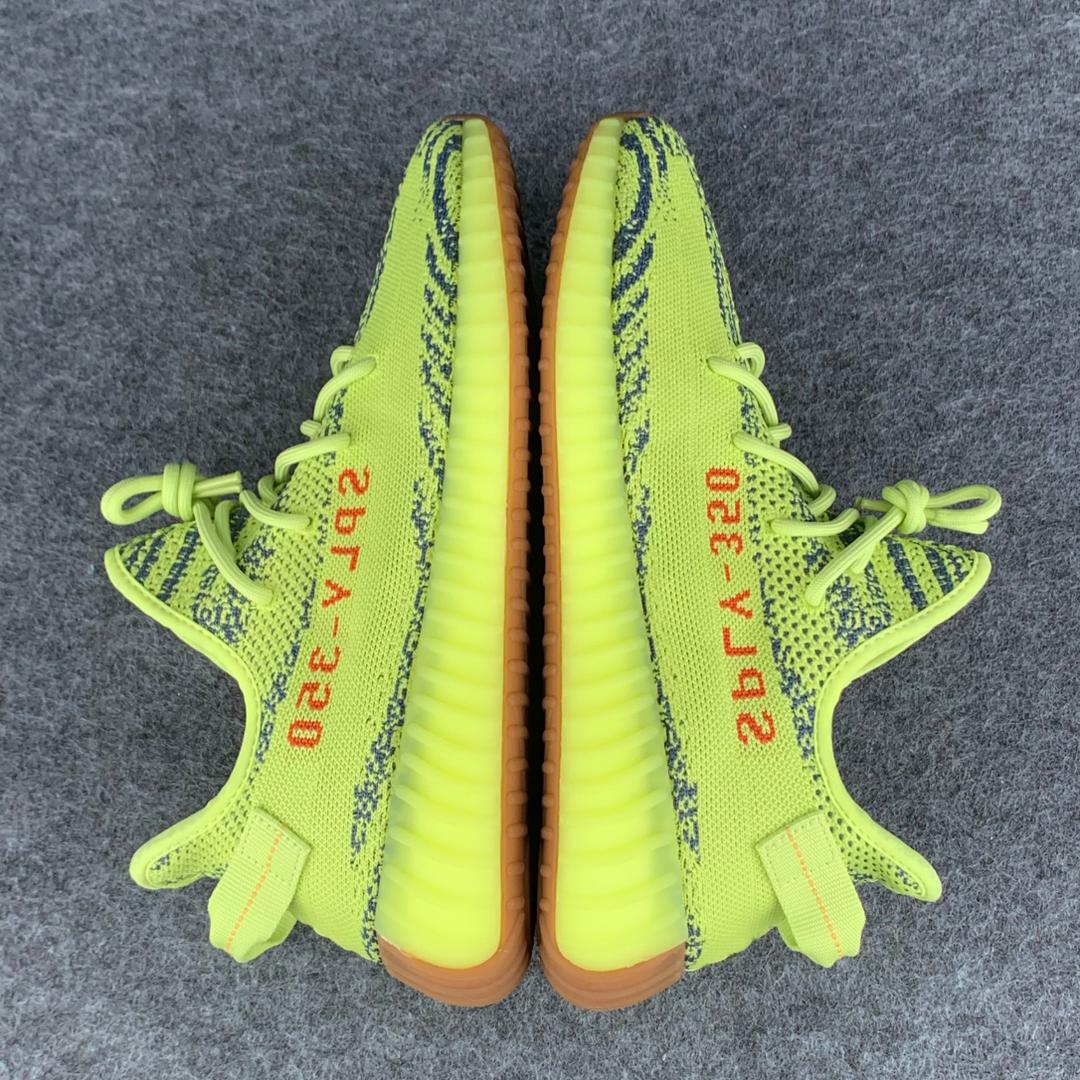 Le Yeezy Boost 350 V2 de Kanye West en Semi Frozen Yellow est arrivé pour la première fois dans les magasins en novembre 2017, avec un réapprovisionnement sorti le 14 décembre 2018. Habillé de la tige Primeknit emblématique d'adidas, le coureur lifestyle est fini dans une teinte jaune vif énergique, celle qui s'étend jusqu'aux lacets, à la languette du talon et à la semelle intercalaire en caoutchouc nervuré infusé de Boost. Des rayures noires en forme de zèbre ajoutent une autre dimension de design à la tige, ainsi qu'une bande latérale ton sur ton ornée de « SPLY 350 » en imprimé rouge inversé. Une semelle extérieure en caoutchouc gomme ajoute une traction adhérente à ce design accrocheur.