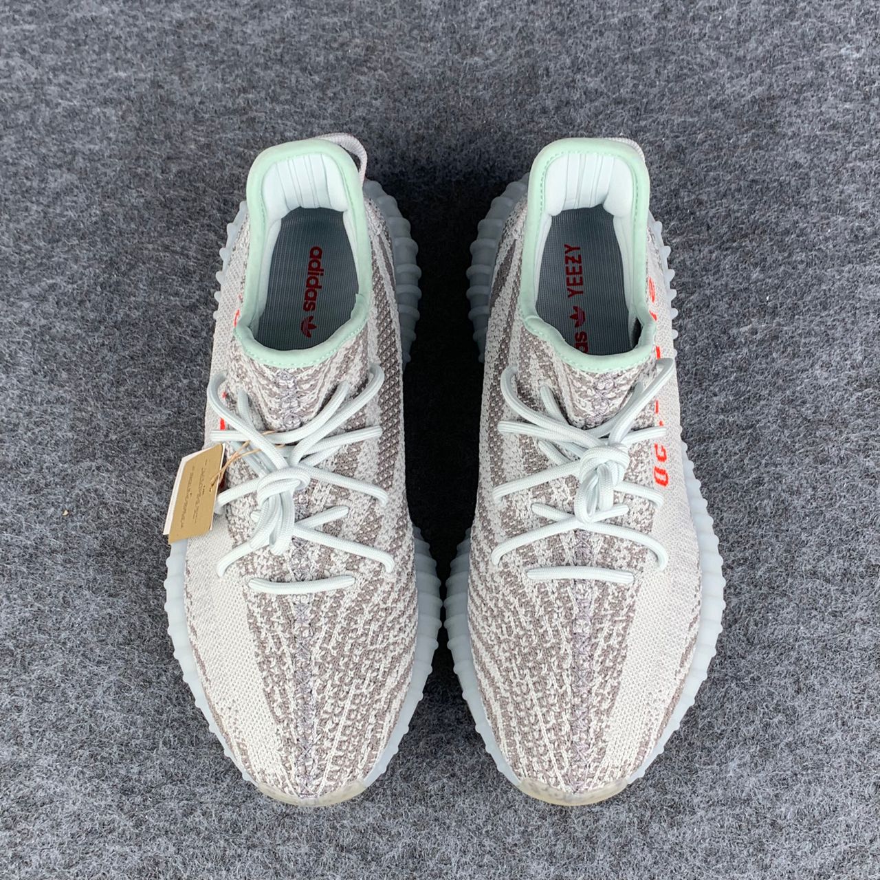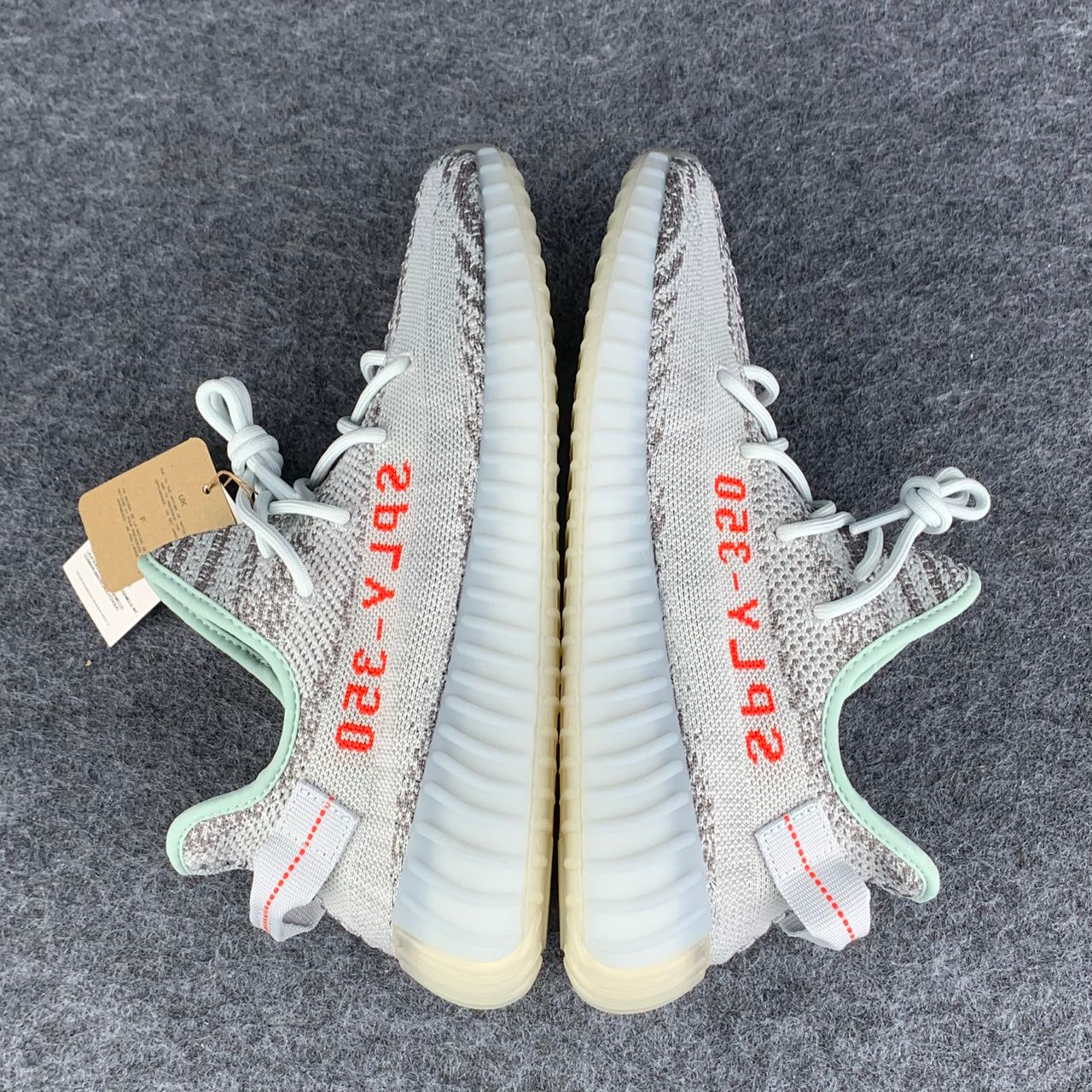 The 5th Yeezy to drop since November 2017 — Yeezy Boost 350 V2 'Semi Frozen Yellow' and ‘Beluga 2.0,’ Yeezy Powerphase Calabasas, and the Yeezy 500 ‘Desert Rat’ — the Yeezy Boost 350 V2 'Blue Tint' was dropped on December 16th, 2017. The sneaker features a neutral white and grey upper with a red ‘SPLY-350’ text on the side in reverse. The shoe also comes with a heel tab, blue tint inner lining, and paste blue laces.
