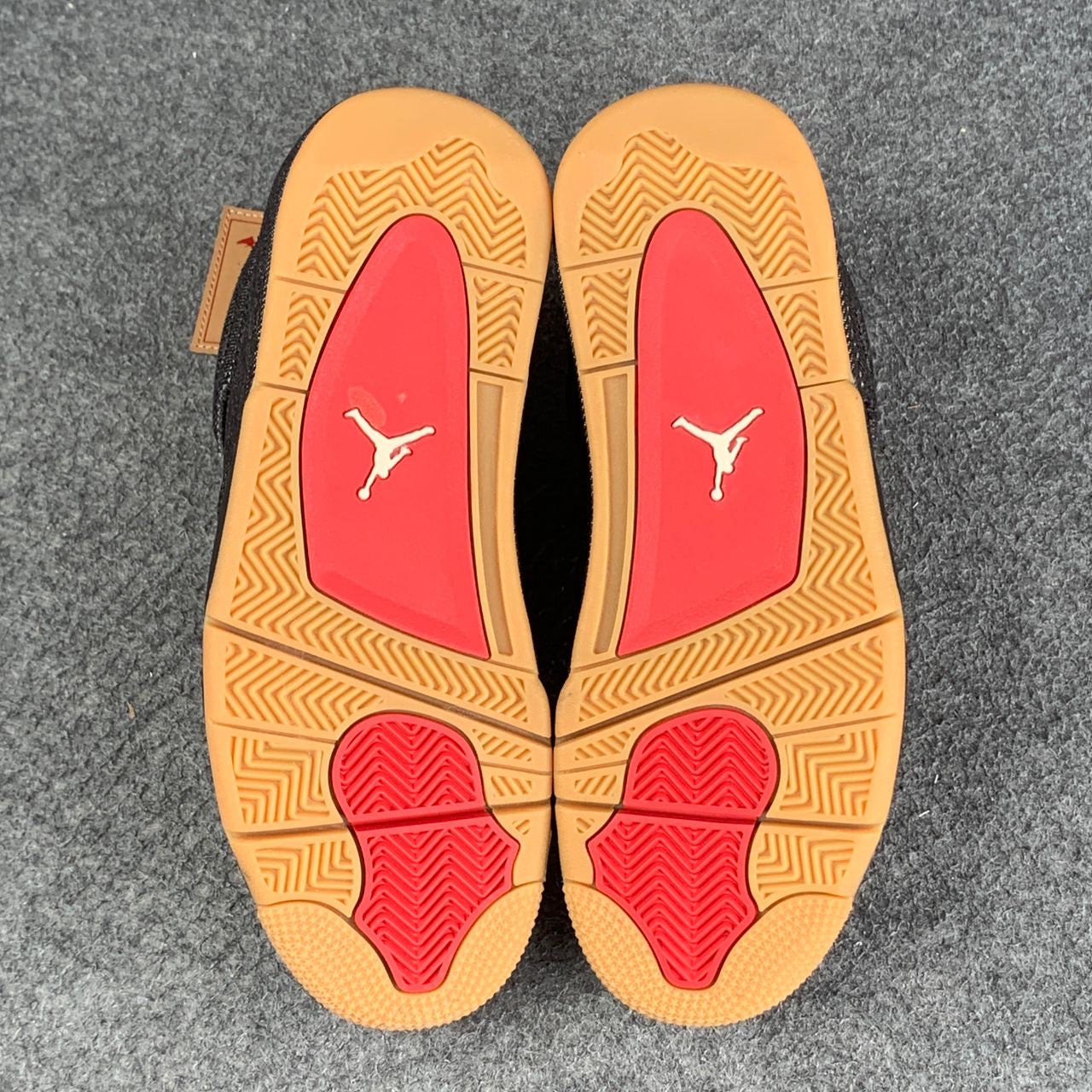 The Levi’s x Air Jordan 4 ‘Black Denim’ overhauls the classic silhouette with materials and details traditionally associated with the iconic American denim brand. In addition to the black denim that covers the upper and midsole, the shoe is accented with Levi’s signature red tab on the quarter panel. Another Levi’s trademark – the ‘Two Horses’ paper patch – is rebranded with a red Jumpman logo and positioned on the tongue, featuring tan coloring that’s matched by a gum rubber outsole.