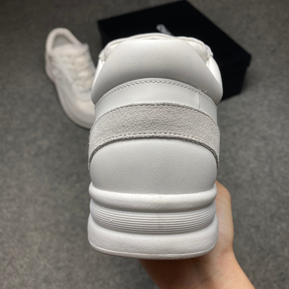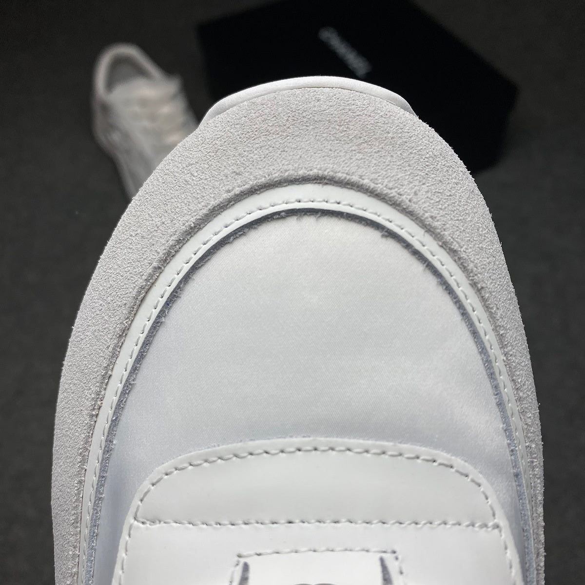 The Chanel Sneaker ‘White’ features a clean tonal design constructed from a blend of suede, mesh, and smooth leather. The upper combines soft cream toned suede overlays with breathable white mesh, creating a layered look while maintaining a lightweight feel. Chanel’s signature interlocking CC logo is stitched onto the side in matching white for a subtle, refined finish. The padded tongue and collar ensure comfort, while the sculpted white midsole offers support for everyday wear. A textured rubber outsole completes the sneaker with durability and traction.