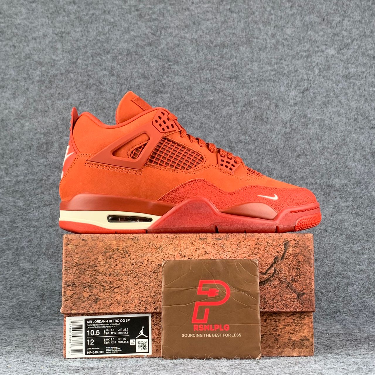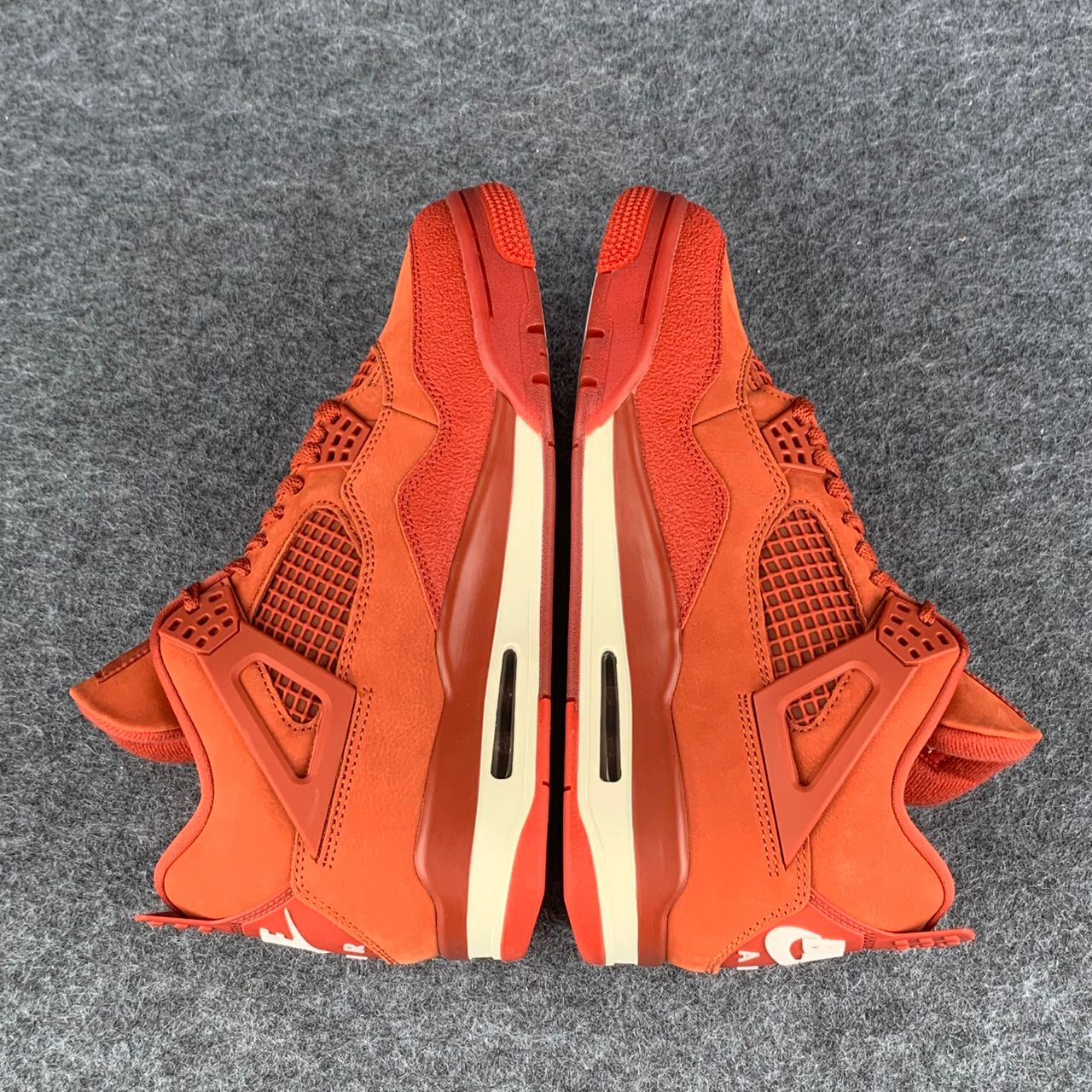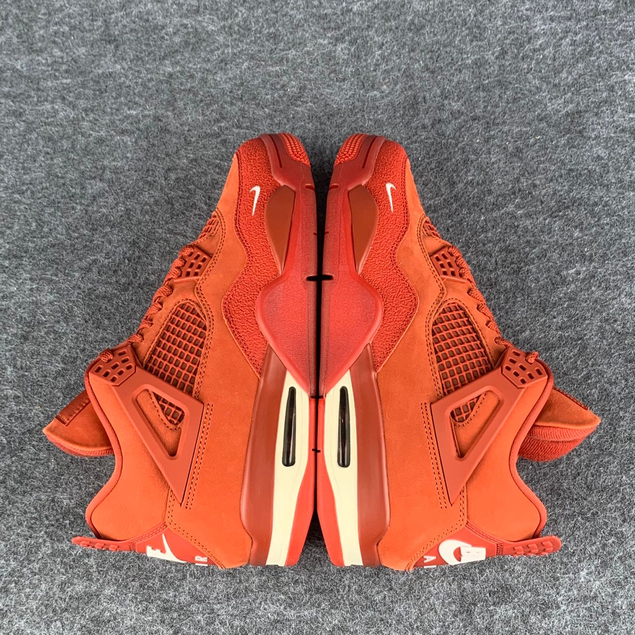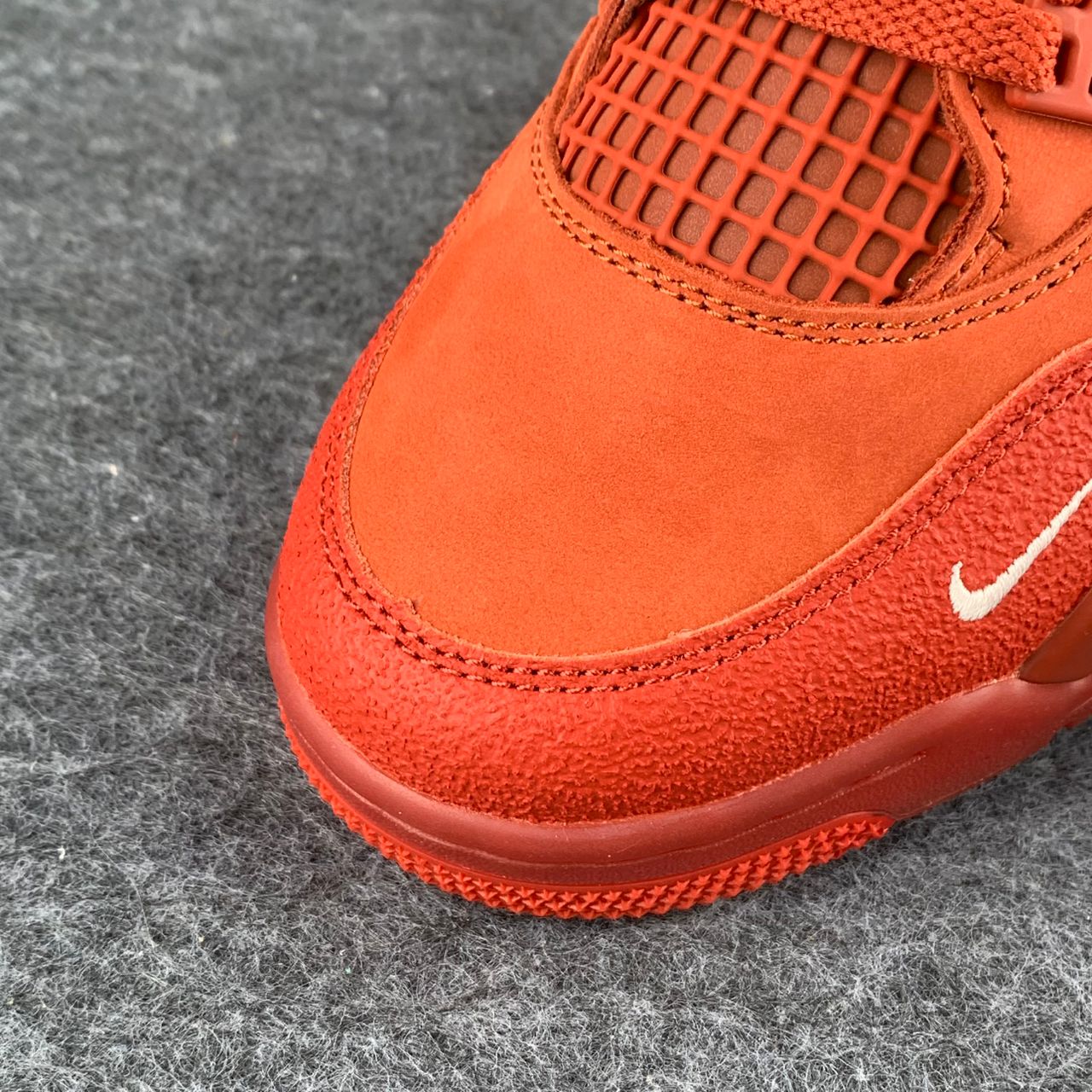 The Nigel Sylvester x Air Jordan 4 Retro OG SP 'Brick By Brick' delivers a monochrome suede upper finished in Firewood Orange and features heritage details, including quarter panel netting, molded eyelets and TPU support wings. The tonal design is disrupted by discreet off-white accents, including the Flight logo on the woven Jumpman tongue tag and an embroidered mini-Swoosh on the lateral forefoot. Bike Air branding adorns the heel tab. A Sail-colored polyurethane midsole packs visible Air-sole cushioning in the heel for a comfortable ride.