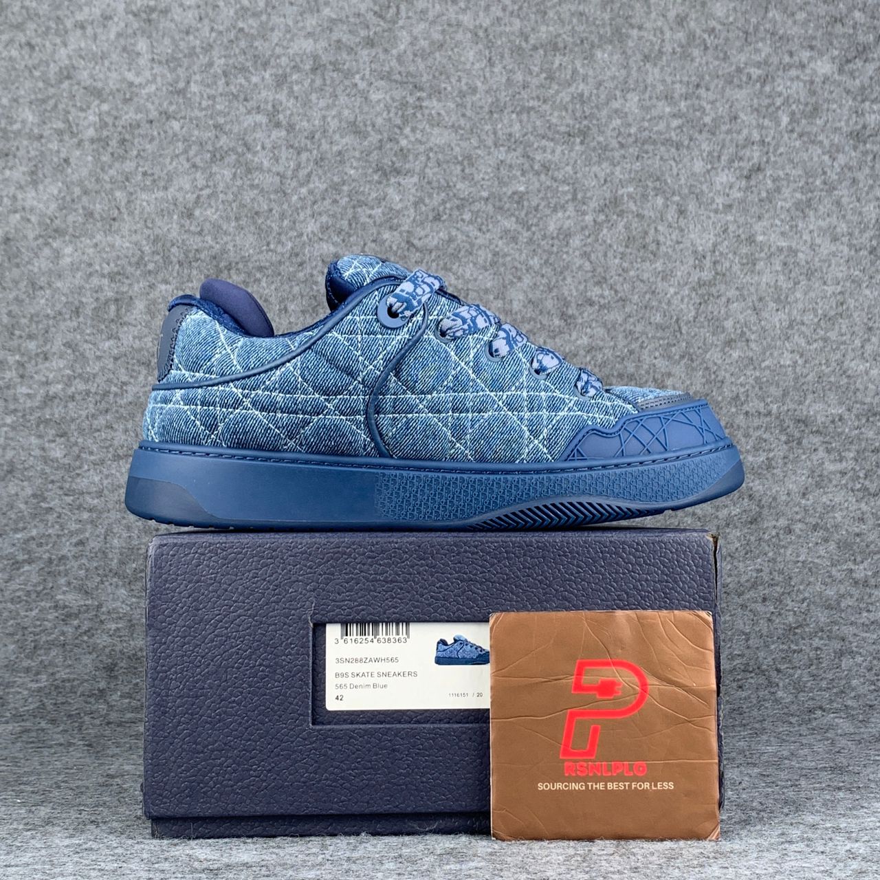 Dior B9S Skater Sneaker ‘Blue’ features a bold skate-inspired silhouette crafted in rich blue tones. Designed with a padded construction for comfort and support, the sneaker showcases layered panels, refined Dior detailing, and premium materials throughout. Finished with a sturdy rubber outsole, it delivers a balance of street-ready attitude and luxury craftsmanship.