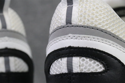 The B22 ‘White Black Gum’ redefines contemporary luxury with an elevated take on the chunky sneaker trend. Crafted in Italy, this statement silhouette fuses athletic inspiration with Dior’s refined craftsmanship. The upper features a blend of white technical mesh and premium black smooth calfskin overlays, delivering texture, breathability, and bold contrast.
