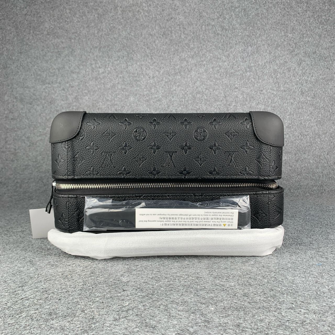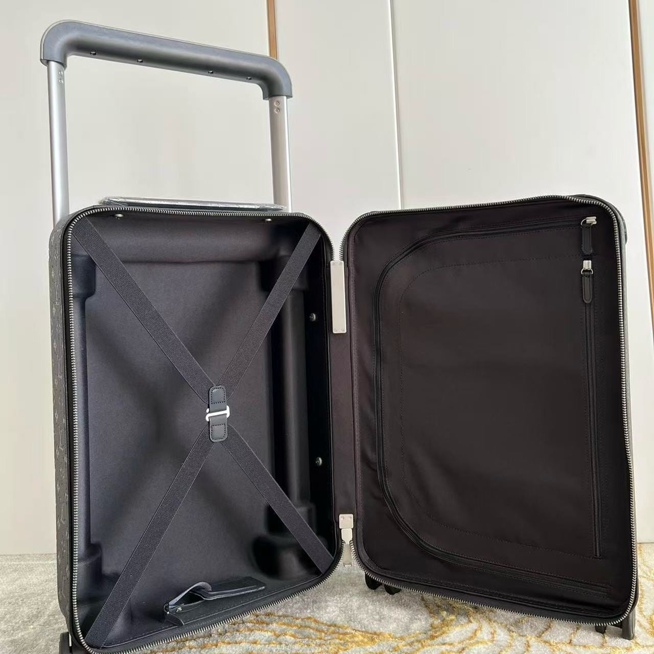 The Horizon 55 carry-on suitcase radiates style in Monogram Shadow leather, with its Monogram embossing. Designed by Marc Newson, one of the most influential industrial designers of his generation, this lightweight case has a completely flat interior, thanks to its external cane. The result is a surprisingly roomy interior. Four compact wheels ensure an ultra-smooth roll.