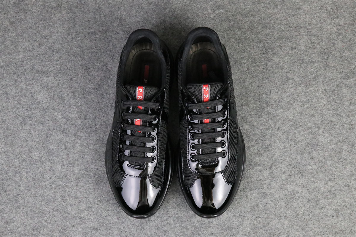 The Prd Women’s America’s Cup ‘Black’ sneaker merges high-performance athletic inspiration with sophisticated design. Crafted from durable technical fabric and premium leather, this edition features a sleek, all-black silhouette accented with subtle tonal branding and the iconic America’s Cup insignia. Engineered for comfort and agility, the lightweight construction is complemented by a grippy rubber sole designed for stability on every step. This sneaker embodies Prada’s blend of luxury and sport, perfect for women seeking modern elegance with a dynamic edge.
