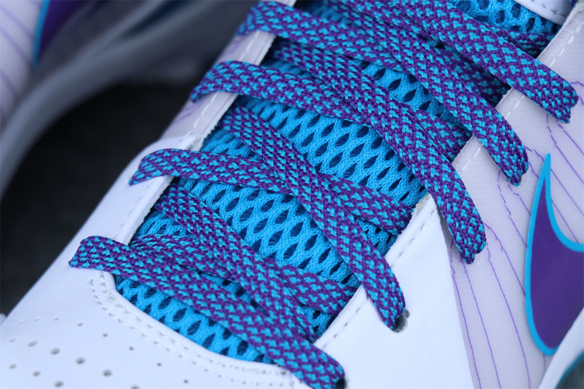 The Kobe 4 marks its retro return in the Zoom Kobe 4 Protro 'Draft Day' sneaker. Released in February 2019 for NBA All-Star Weekend, this shoe is a nod to basketball history. On June 26, 1996, high school senior Kobe Bryant was drafted by the Charlotte Hornets before being traded to the Los Angeles Lakers, a move that changed the course of Bryant’s life and two NBA franchises. A White, Orion Blue and Varsity Purple color palette and the draft date embossed on the heel pay tribute to this pivotal moment in basketball history.