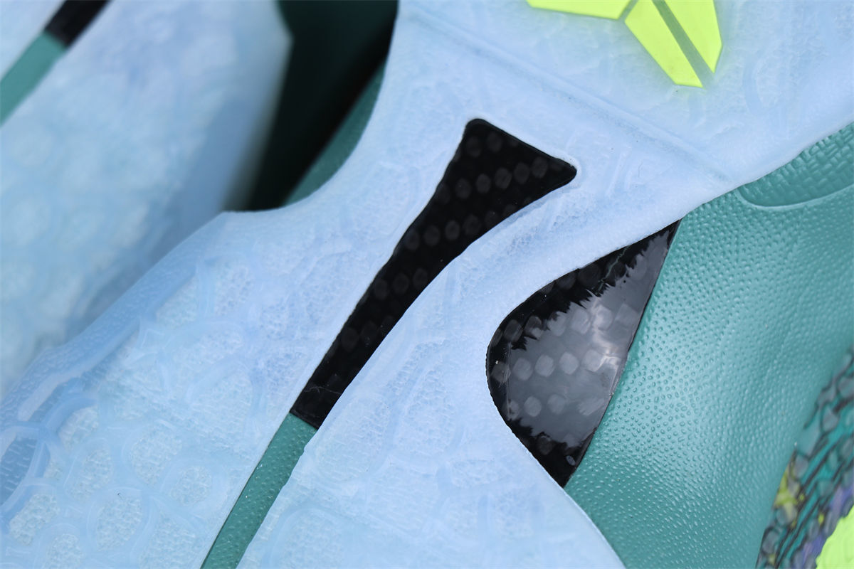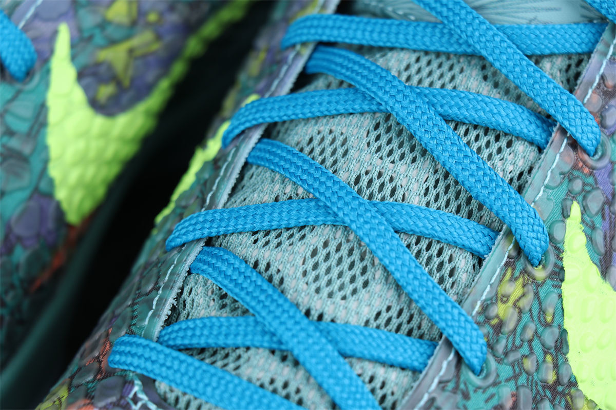 The Kobe 6 ‘Prelude’ is part of an eight-shoe capsule that features Kobe’s history of signature shoes with Nike leading up to the launch of the Kobe 9. With a graffiti design depicting everything from palm trees to sharks, the ‘Prelude’ edition of the Kobe 6 draws inspiration from the eclectic Venice neighborhood of Bryant’s longtime home of Los Angeles. The colorful graphics adorn a snakeskin textured upper, while a Zoom Air midsole and stabilizing heel counter provided added support.