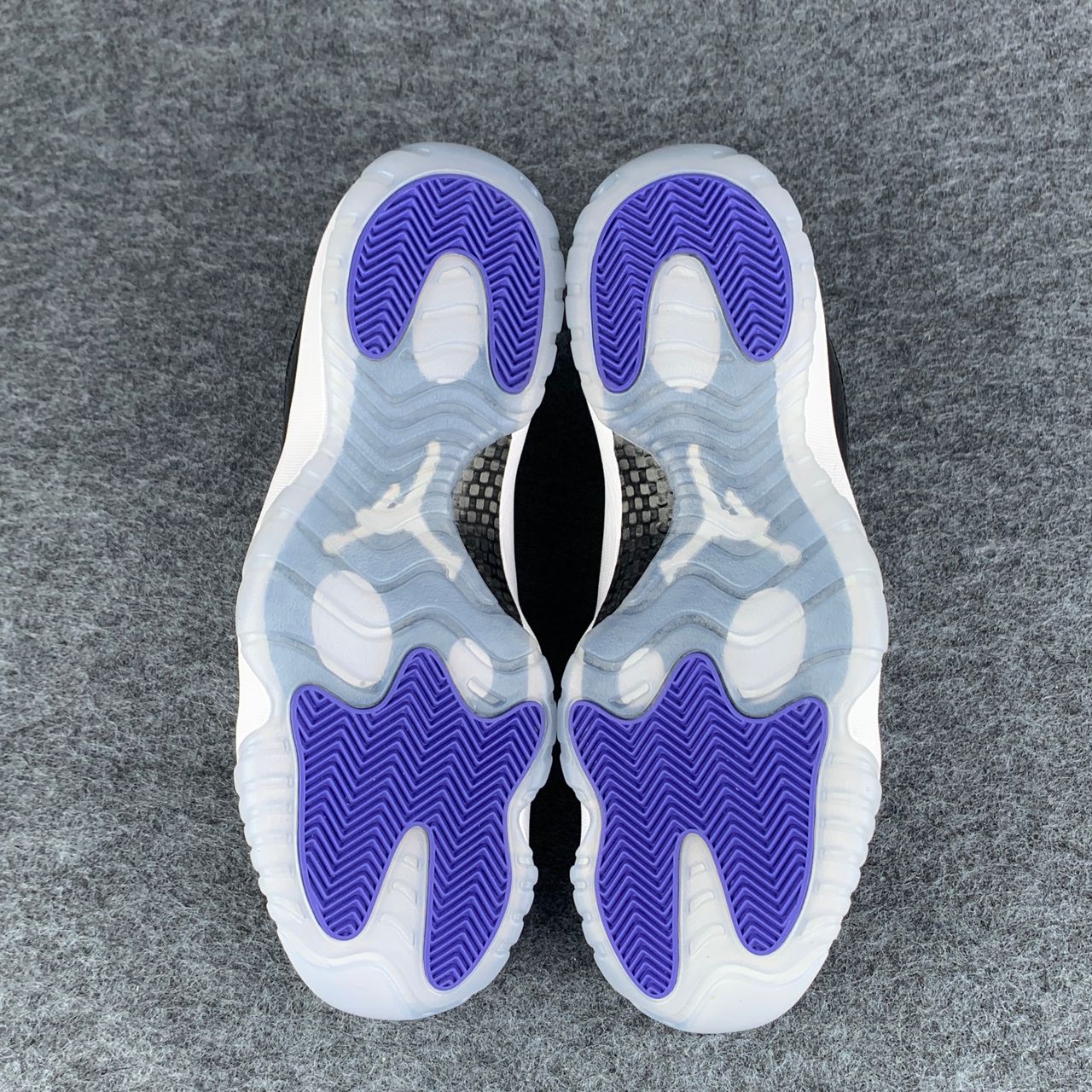 The Air Jordan 11 Retro Low ‘Concord’ reimagines the iconic OG colorway as a sleek low-top. The material build is faithful to the 1995 original, featuring a white ballistic mesh upper with a contrasting black patent leather overlay. A plush Phylon midsole is fitted with full-length Air sole cushioning and reinforced with a springy carbon fiber plate. The latter is visible through an icy translucent outsole, enhanced with purple herringbone rubber traction pods that give the shoe its name.